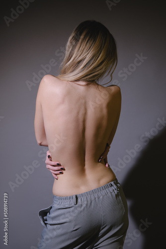 slim topless woman