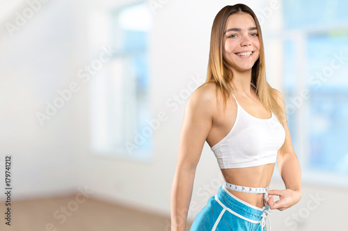Slim young woman with a tape measure