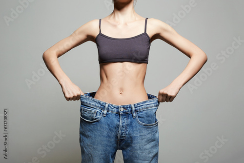 slimming Young woman in jeans. Beautiful Thin body Girl. Studio portrait