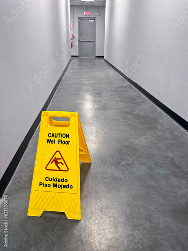 Slippery floor sign in a corridor