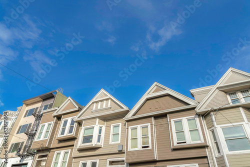 Sloped suburban houses with beige and light brown exterior in San Francisco, California