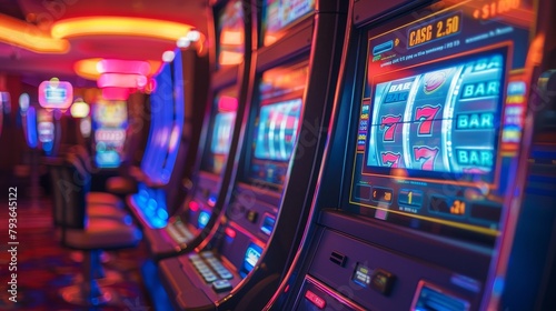 Slot Machine Backgrounds: A photo of a modern video slot machine with a digital display and interactive buttons