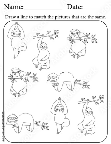 Sloth Puzzle. Printable Activity Page for Kids. Educational Resources for School for Kids. Kids Activity Worksheet. Match Similar Shapes
