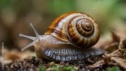 Slow and Steady: Macro of a Snail with Spiral Shell