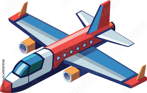 Small airplane illustration in red and blue with isometric perspective