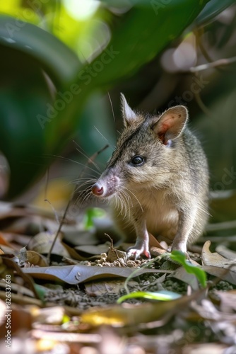 Small animal standing on a leaf covered ground. Suitable for nature and wildlife themes