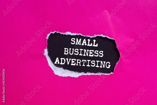 Small business advertising message written on ripped torn pink paper on black background. Conceptual small business advertising symbol. Copy space.