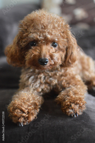 Small Cute Brown Teacup Poodle Laying on Sofa
