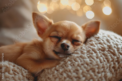 Small dog sleeping peacefully on a cozy blanket in a comfortable indoor environment