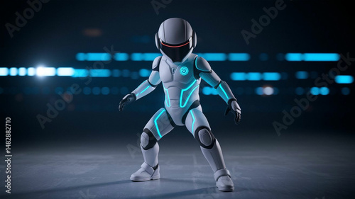 Small Figure in Futuristic Suit with Blue Glowing Lines