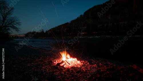 Small fire by the river in the early evening.2021
