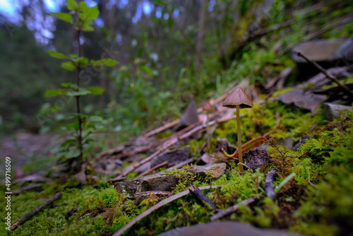 Small forest mushroom in its natural environment; small and beautiful.