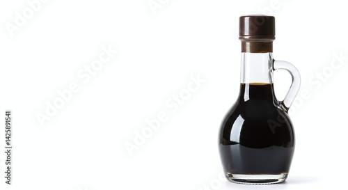 small glass bottle of balsamic vinegar with no branding isolated on crisp white background. generative ai