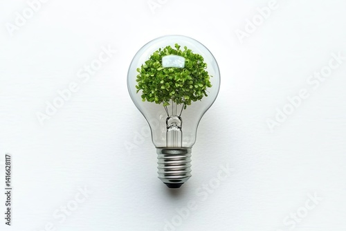 Small green plant inside a clear lightbulb. Eco-friendly concept