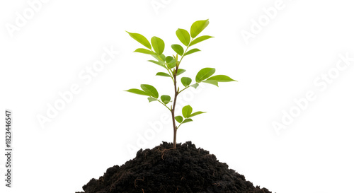 Small green plant sprouting from soil isolated on transparent background
