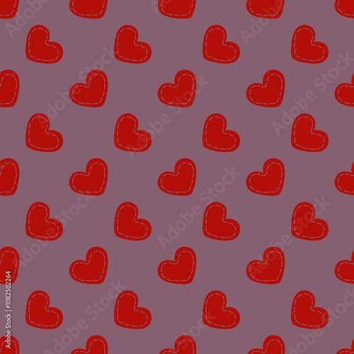Small Hearts with Stripe on Violet Background Seamless Pattern Design