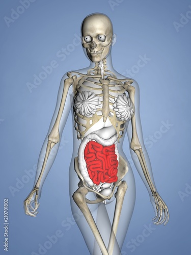 Small Intestine, Female Skeleton, 3D Human Model