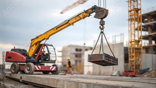 Small Lifter Crane Lifting Metal Object at Construction Site