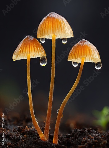 Small mushrooms droplets closeup