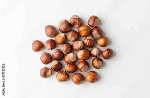 small pile of hazelnuts on a white background