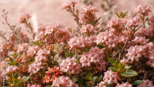 Small pink kalanchoe flowers as a decorative backdrop, suitable for text and layout