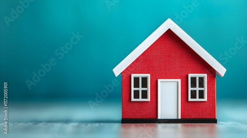 Small Red House Model on Blue Background for Home Decoration and Real Estate Concepts