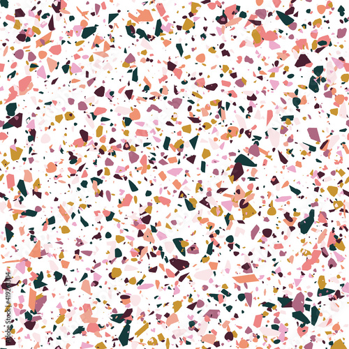 Small Scale Italian Terrazzo Seamless Pattern. Venetian Marble Flooring Texture Vector Background.