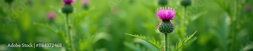 Small thistle buds tightly clustered at the stem base among leafy foliage, thistle, stems