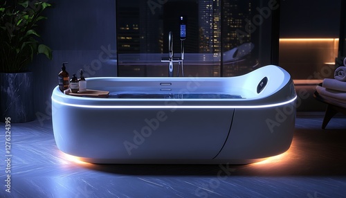 Smart bathtub with VR-enhanced relaxation AI-generated sound therapy and automated aromatherapy