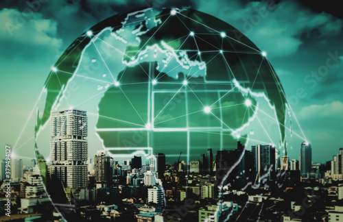 Smart city and abstract dot point connect with gradient line and aesthetic Intricate wave line design , big data connection technology concep