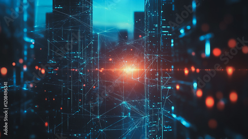Smart digital Innovation city with connection network reciprocity over the cityscape. of future smart wireless digital city and social media networking systems that connects people with in city