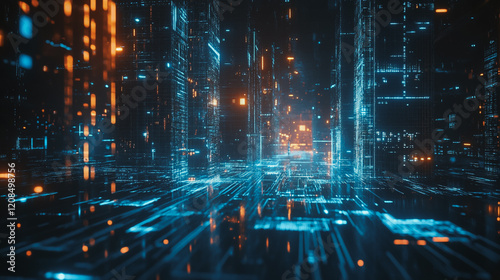 Smart digital Innovation city with connection network reciprocity over the cityscape. of future smart wireless digital city and social media networking systems that connects people with in city