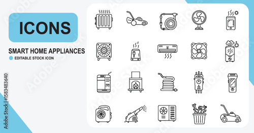 Smart Home Appliances – Black and White Flat Line Icon Set