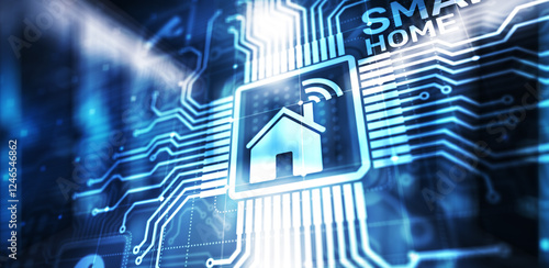 Smart home control panel on virtual screen. IOT and Automation technology concept.