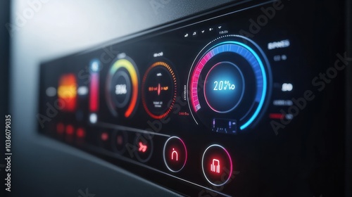 Smart home control panel with digital interface, allowing users to manage temperature and other settings, showcasing modern home automation technology and energy efficiency.