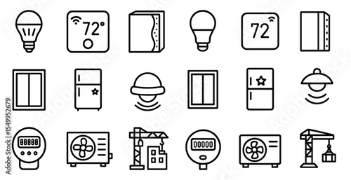 Smart home outline icons set – linear, connected, automation and device symbols