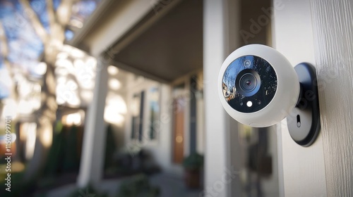 Smart Home Security Surveillance Camera Mounted on Modern Home Exterior