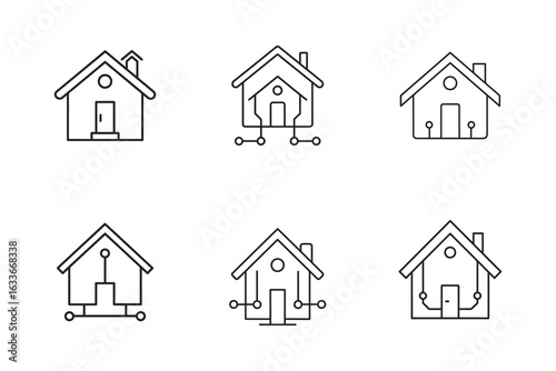 Smart Home Technology Concepts Represented by Outline Icons on White Background Illustrating Connectivity and Automation Features for Modern Living