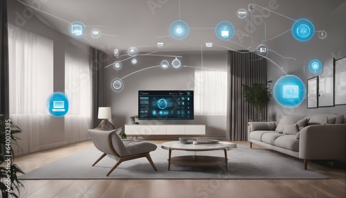 Smart home with various connected devices and appliances - Internet of Things concept, AI