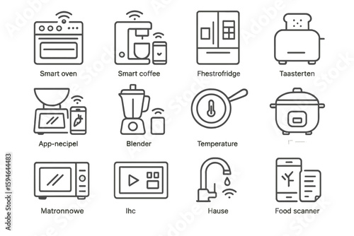 Smart kitchen icons: oven, blender, fridge, toaster, coffee maker, more