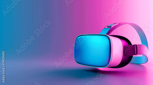 Smart VR virtual reality goggles with virtual screen holographic, gradient background.
