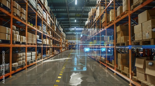 Smart warehouse management system using augmented reality technology to identify package picking and delivery . Future concept of supply chain and logistic business