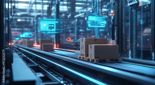 Smart warehouse management system using augmented reality technology to identify package picking and delivery . Future concept of supply chain and logistic business