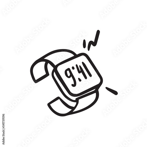 Smart watch with time. Vector simple outline doodle style, icon or illustration, sticker