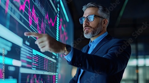 Smartly Dressed Man Analyzing Data on Digital Screen