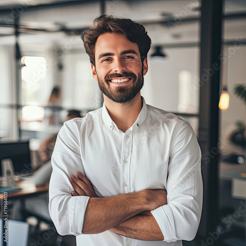 Smartly Dressed Man With Arms Crossed in a Modern Office