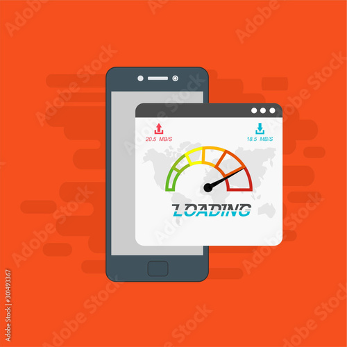 smartphone and internet speed icon. Flat design and technology concept. Vector illustration for web banner, business presentation, advertising material