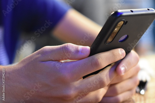 Smartphone consultado relajadamente por un joven en luminoso entorno laboral tecnológico