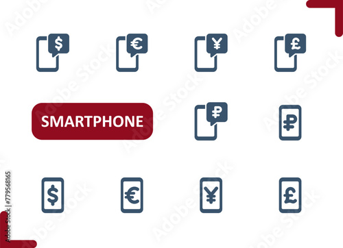 Smartphone Icons. Mobile Phone, Telephone, Money, Online Banking, Dollar, Euro, Yen, Pound, Ruble Icon