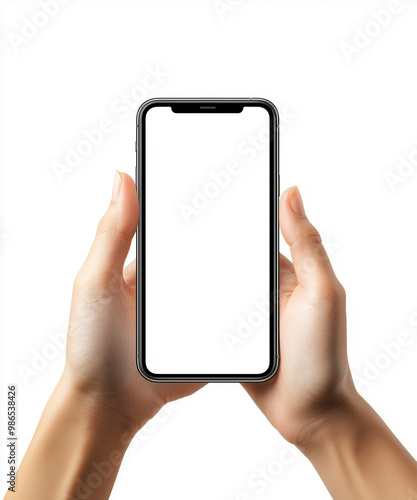 Smartphone Mockup: Hand Holding Vertical Phone with Blank Screen. Generative AI.